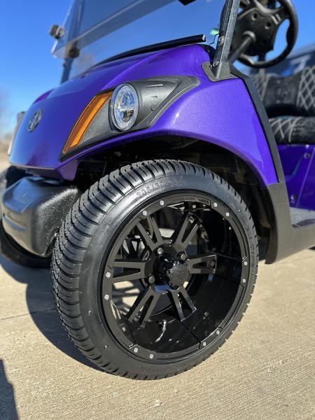 Keywords: 2021 Yamaha Drive2 golf cart, blue custom golf cart, Quietech EFI gas cart, lifted golf cart for sale, street-legal golf cart, golf cart with USB, Yamaha gas golf carts, blue golf cart with black seats