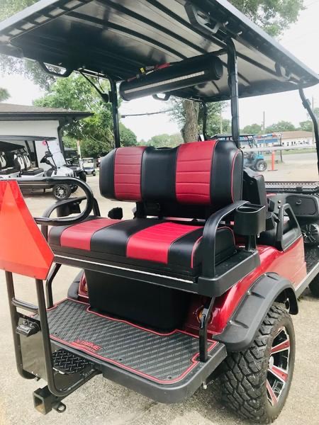 Seating & Storage: Luxury 2-tone seats, flip-seat with under-storage, golf ball holder.