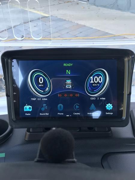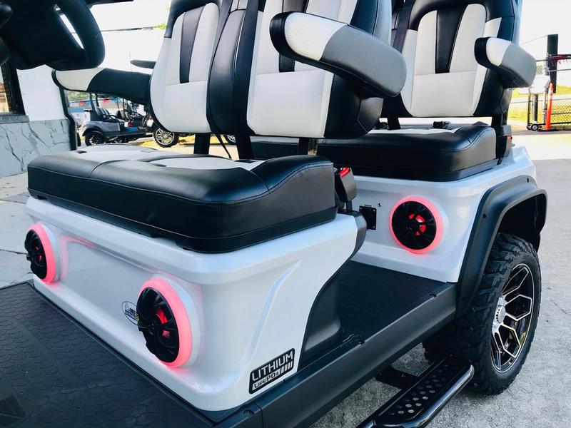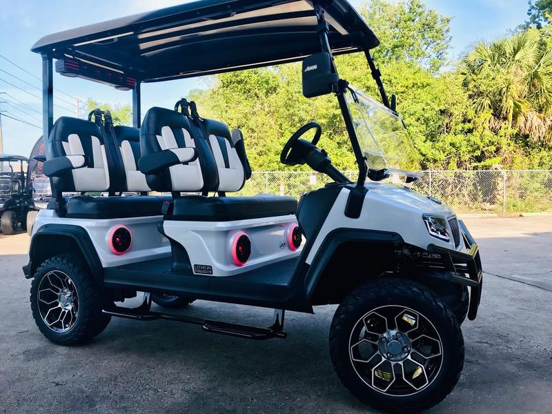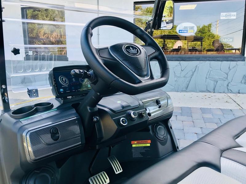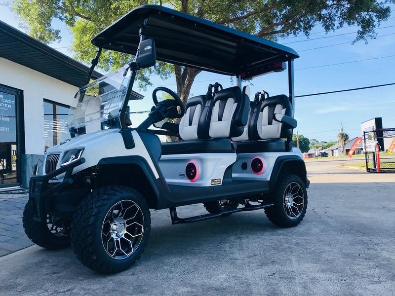 The 2025 White Evolution D5 Maverick 4 Plus cart brings enhanced comfort, per-owned that looks almost new advanced technology, and rugged styling to your electric cruising experience. Built with a 48 V lithium power system with EM brake and a 400 A controller for smooth and efficient performance, this street-legal cart seats up to 4 passengers in premium two-tone luxury seats with foldable armrests and built-in storage features for convenience. A 9″ multi-functional touchscreen dashboard provides intuitive access to speed and system displays, lighting controls, Bluetooth audio, Apple Airplay and Android Auto compatibility, and a backup camera view, bringing smart connectivity to every ride. Designed for both style and capability, the cart features LED lighting, an adjustable steering column, a premium sound bar, and a rear storage trunk for gear and essentials. The Maverick 4 Plus is lifted with all-terrain silent tires on 14×7″ aluminum wheels, giving confident traction on paved paths or community trails. Additional upgrades like DOT-ready safety belts, fold-able windshield with slid-able sub-windows, automobile-style rear bumper, and ergonomic cup holders and charging ports make it versatile for everyday use. The sleek white finish and bold design elements help it stand out while delivering dependable performance, comfort, and tech integration for all your cruising needs.