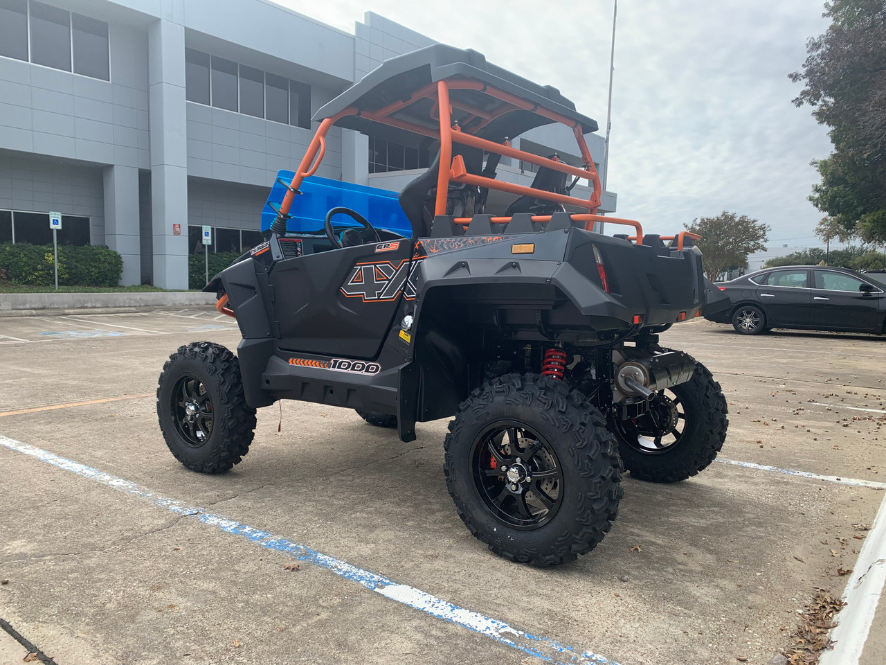 The Black TM SportsCross 1000 utility kart blends powerful EFI performance, rugged capability, and practical utility features in one versatile off-road package. At its core is a 1000 cc V-Twin fuel-injected (EFI) engine matched with a CVT transmission (L-H-N-R-P) and selectable 2×4 and 4×4 drive modes with limited slip and differential lock, giving confident traction and handling across varied terrain. #OffRoadCapability #EFIEngine #4x4Drive