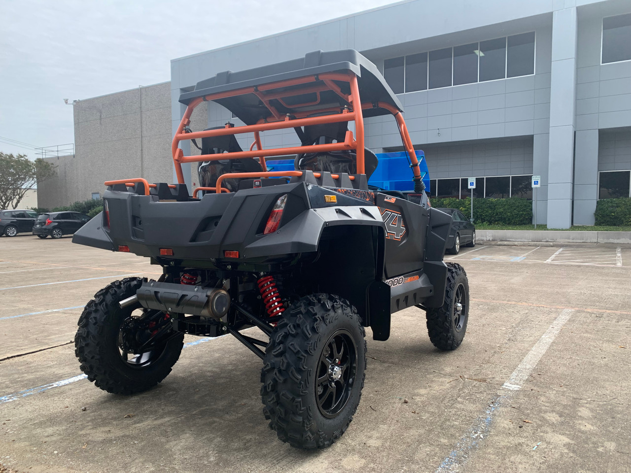 Designed for control and comfort, this utility ride includes electronic power steering for easier maneuvering, a digital dashboard for system monitoring, and Vi-LOCK adjustable nitrogen gas coil-over suspension for a smoother ride over rugged surfaces. Durable hydraulic disc brakes provide strong stopping power, while Hi/Lo LED headlights, turn signals, and rear lighting enhance visibility day or night. #EPS #AdjustableSuspension #LEDLighting Utility-minded features like a cargo bed for gear and supplies, a 3500 lb front winch, and a tow hitch capacity make this kart ready for both work and recreation. The rugged build includes 15″ aluminum wheels with large off-road tires, a full safety belt system, side mirrors, and a hard top for protection. With its bold black styling and robust feature set, the SportsCross 1000 utility kart is ideal for outdoor tasks, trail exploration, hauling needs, or weekend adventures. #UtilityFeatures #CargoHauling #TrailReady #AdventureRide