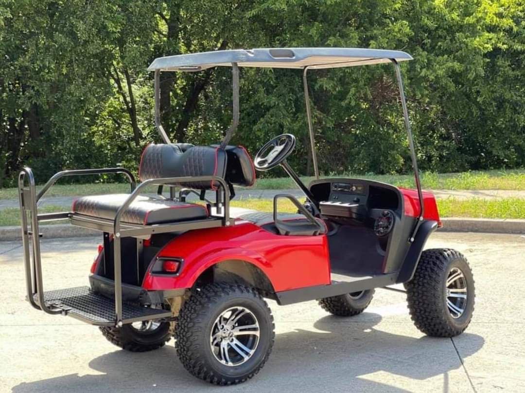 The EZ-GO Express S4 EFI Gas is a powerful and stylish 4-passenger golf cart built for performance on and off the road. Featuring a modern fuel-injected gas engine, lifted suspension, rugged tires, and bold styling, it’s perfect for neighborhoods, trails, and recreational use.