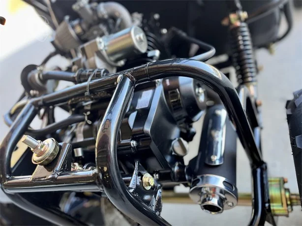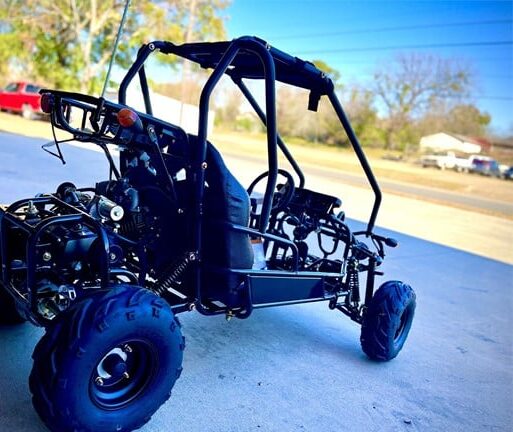 The off-road recreational go-kart delivers rugged performance and outdoor adventure capability in a compact, fun-to-drive design. Built on a heavy-duty tubular steel frame with an integrated roll cage, this kart ensures durability and operator protection on rugged terrain. Featuring dual bucket seating with secure harness mounts, it comfortably accommodates two riders for shared trail fun.