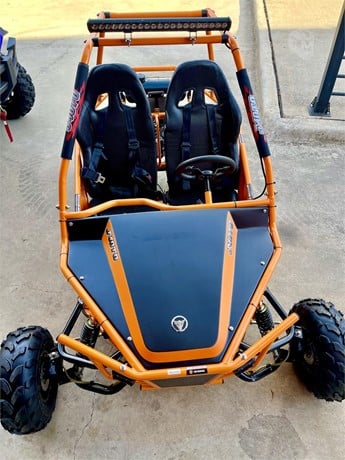 Featuring dual bucket seating with secure harness mounts, this buggy comfortably accommodates two riders — making it perfect for shared trail rides with family or friends. The kart’s all-terrain tires and responsive front suspension offer excellent traction and performance over dirt paths, grass, gravel, and uneven surfaces.